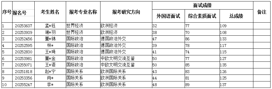 中国社会科学院大学国际政治经济学院欧洲系2025年招收博士生综合考核面试成绩公示